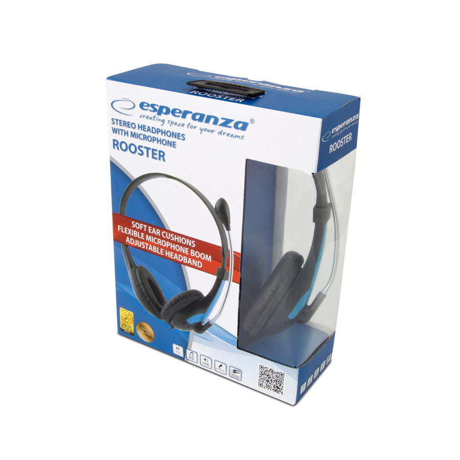 Κομψά στερεοφωνικά ακουστικά με μικρόφωνο από την Esperanza. Είναι ελαφριά για να μην κουράζουν τον χρήστη με ρυθμιζόμενο μικρόφωνο κεφαλής και εύκαμπτο βραχίονα.