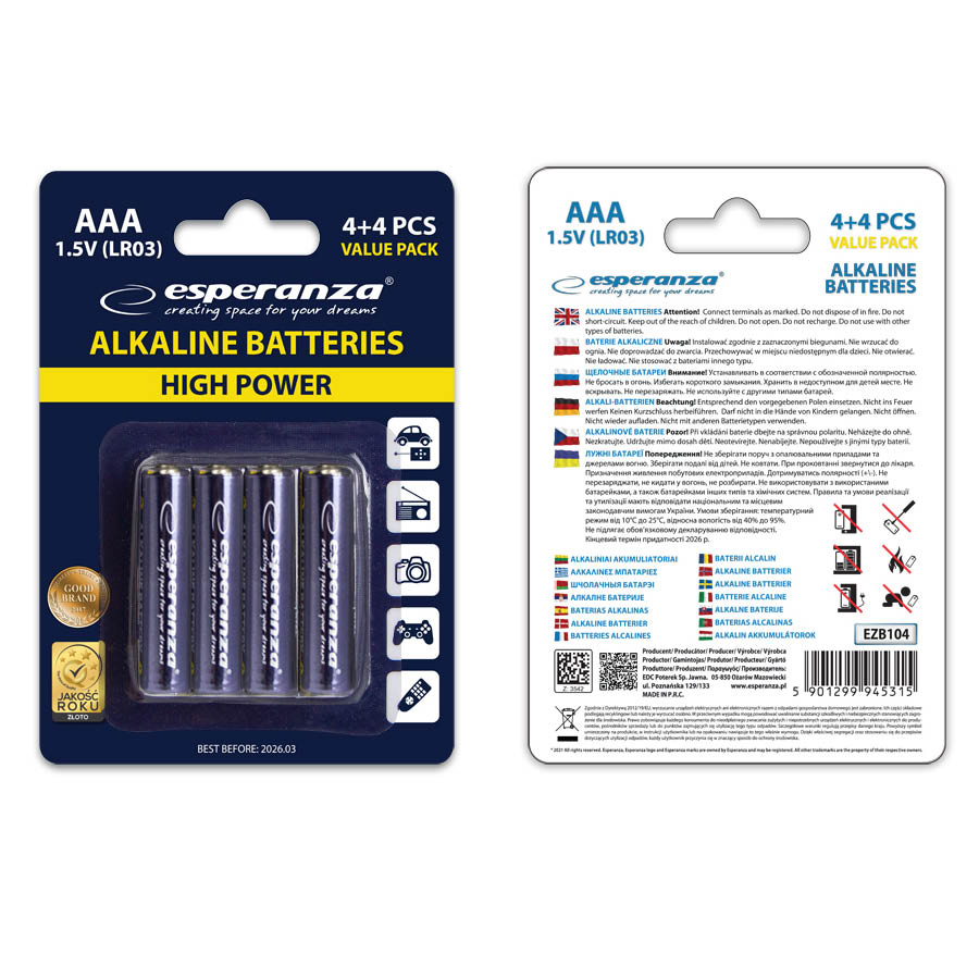 Οι αλκαλικές μπαταρίες Esperanza AAA υψηλής ποιότητας (R3 / LR3 / LR03).