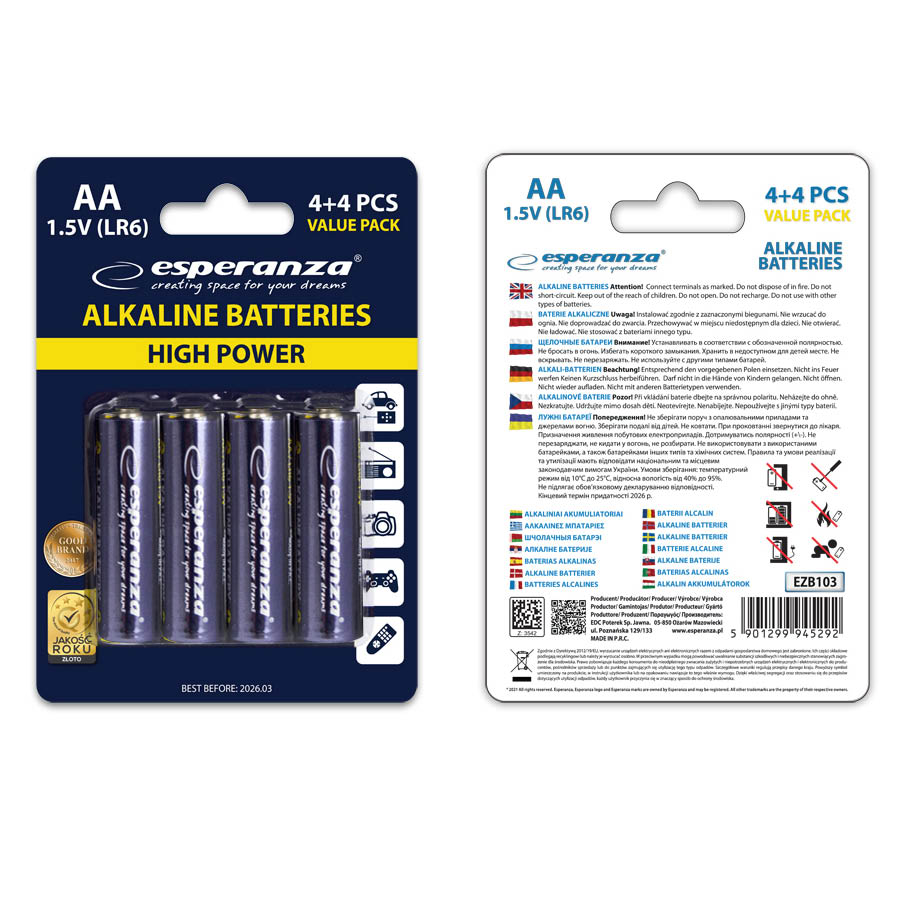 Οι αλκαλικές μπαταρίες Esperanza AA υψηλής ποιότητας (R6 / LR6 / LR06).
