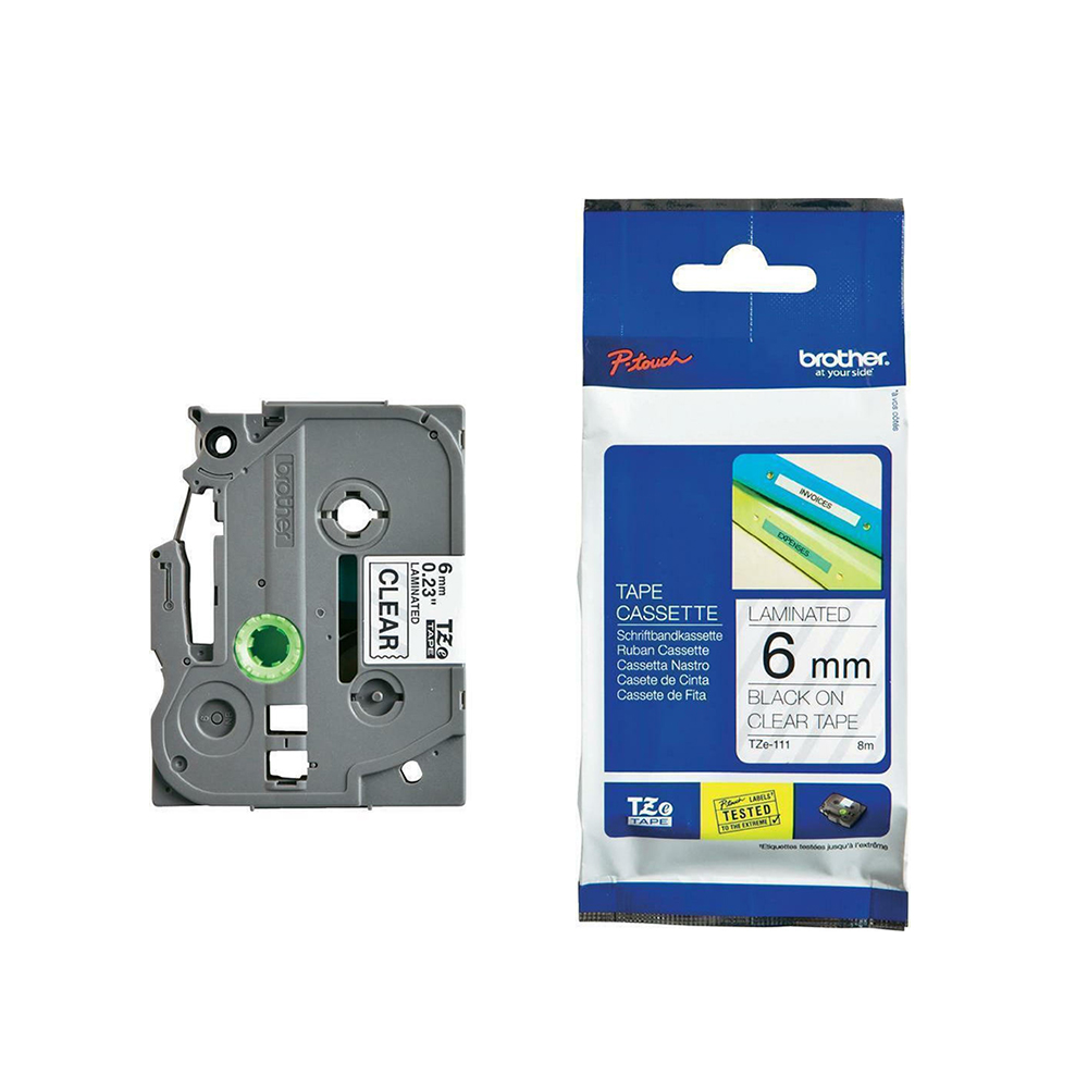 Brother P-touch Laminated Black on Transparent 8m x 6mm (TZE111) (BROTZE111)