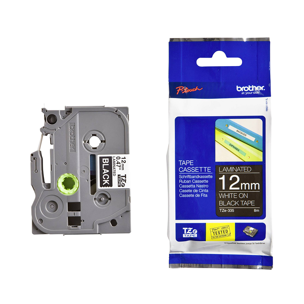 Brother TZe-335 Labelling Tape – White on Black, 12mm wide (TZE335) (BROTZE335)