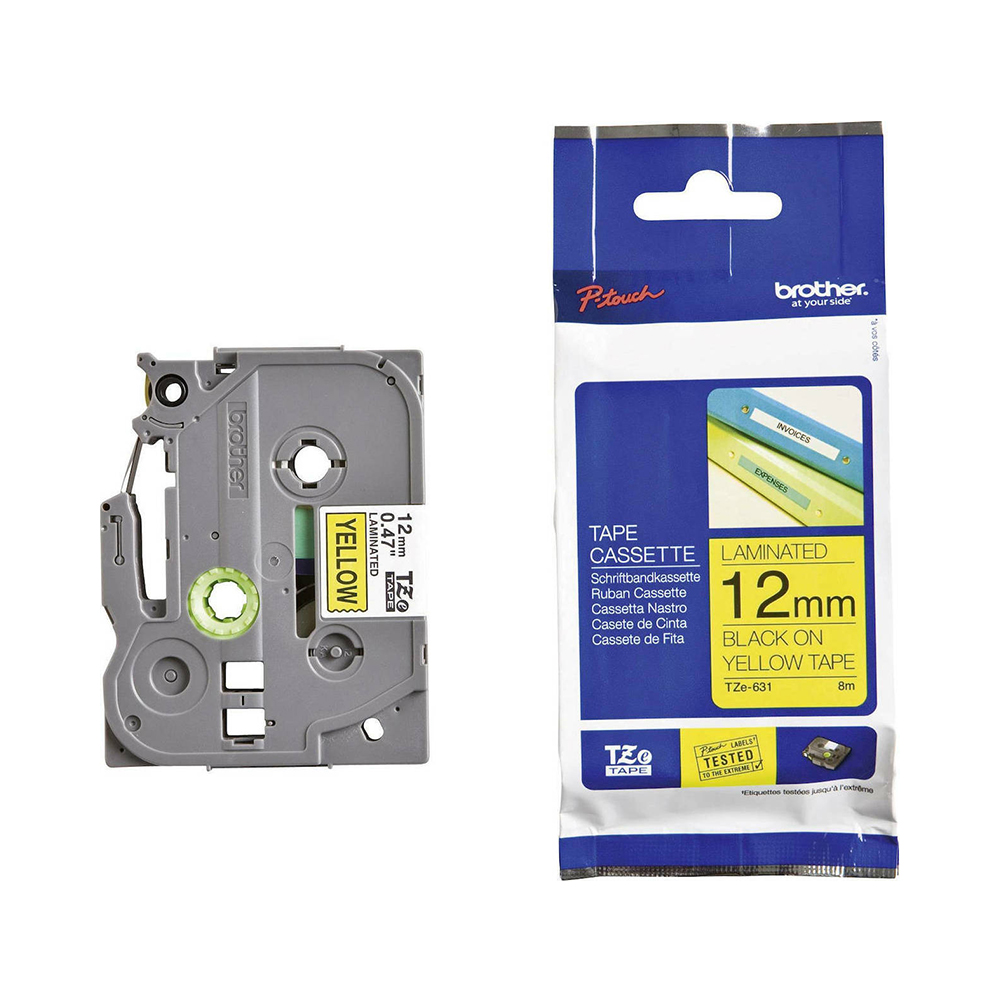 Brother TZe-631 Labelling Tape – Black on Yellow, 12mm wide (TZE631) (BROTZE631)