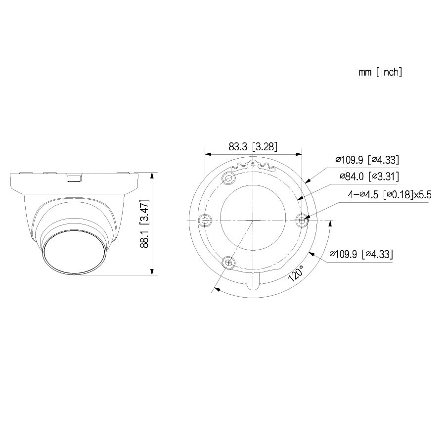 CCTV Dome HDCVI Κάμερα 5MP Starlight Quick-to-install IR Eyeball 2.8mm DAHUA HAC-HDW1500T