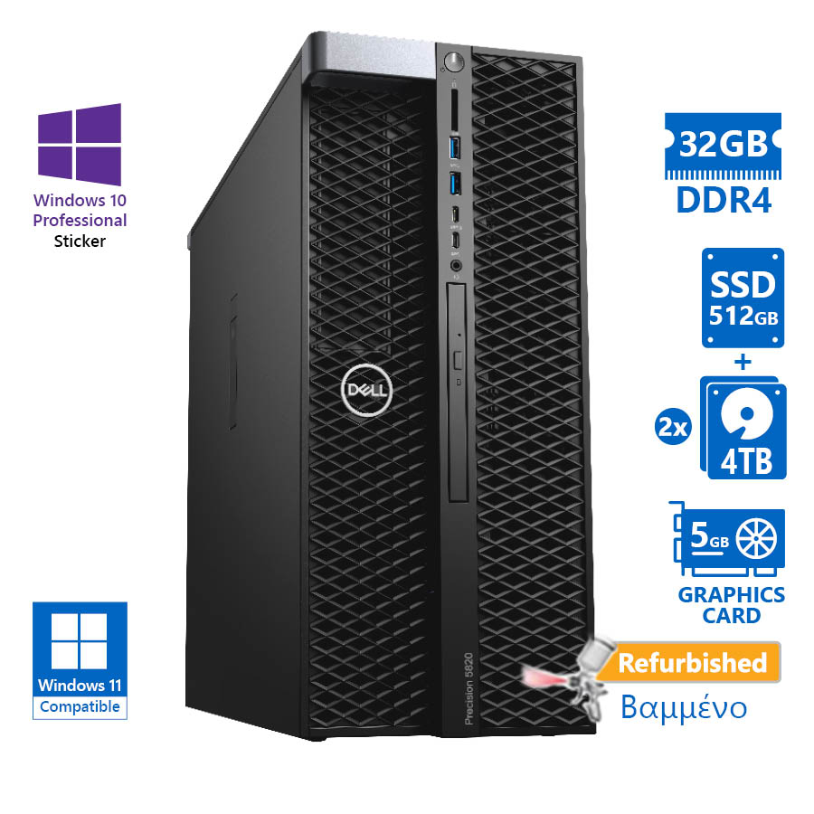 Dell Precision 5820 Tower Xeon W-2133(6-Cores)/32GB DDR4/512GB SSD & 2x4TB/Guadro P2000 (5GB)/No ODD