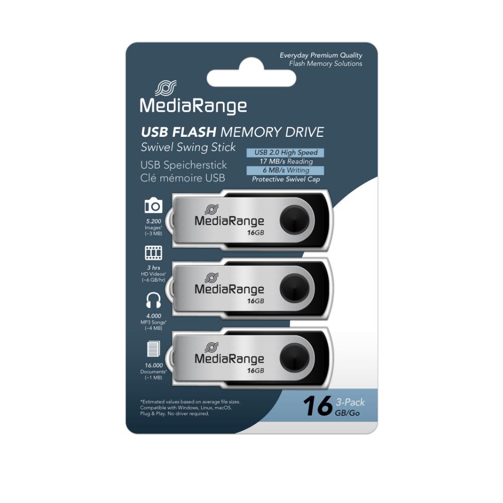 MediaRange USB flash drives, 16GB, Pack 3 (MR910-3)